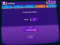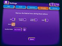 - "Comfort options" allow you lot to limit the field of view for specific movements to reduce the furnishings of Virtual Reality sickness for some players. With "Comfort Mode" yous can cull whether you lot apply these settings always, never, or only for vehicles (e.g., the hang gliders in Rec Royale). The "Condolement Mode Settings" permit yous to disable the stereoscopic view ("2D") and to specify how large the field of view should be in comfort fashion.